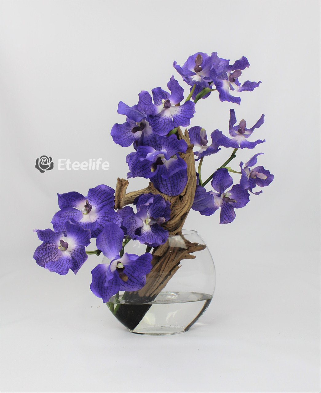 10′′ Moon vase with purple Vanda orchids