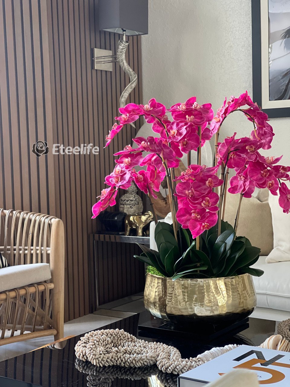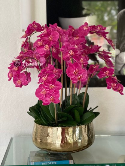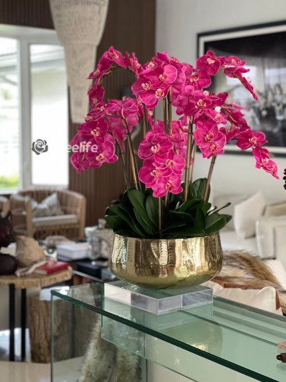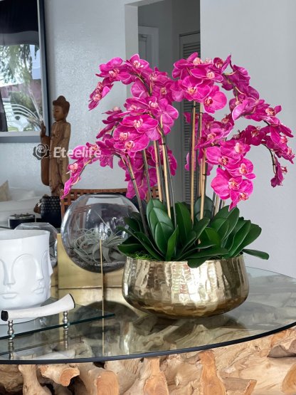 Pink Phalaenopsis Orchids Floral Arrangement in Large Gold Planter(Out of Stock)
